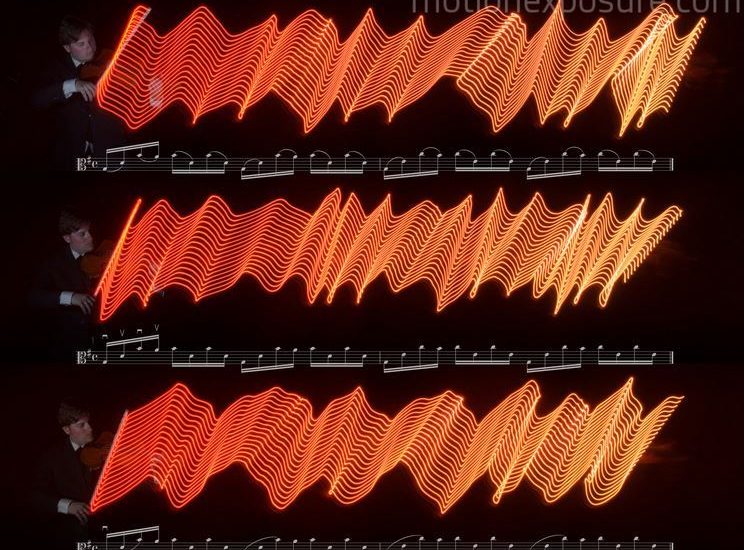 El fotógrafo Stephen Orlando, a través de la técnica de fotografía conocida como Light Painting, logró captar el movimiento que hacían músicos de viola, violín y chelo al tocar sus instrumentos, poniendo unos pequeños LED’s en el arco.