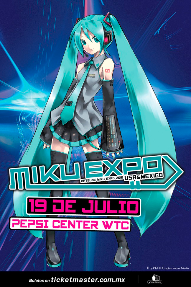La sensación musical japonesa Hatsune Miku regresará al país el próximo 19 de julio de 2018, para presentarse en el Pepsi Center WTC de la Ciudad de México. Los boletos para esta experiencia única estarán disponibles en venta general a partir del 10 de enero a las 19:00 horas a través del Sistema Ticketmaster en www.ticketmaster.com.mx y al 53-25-9000.