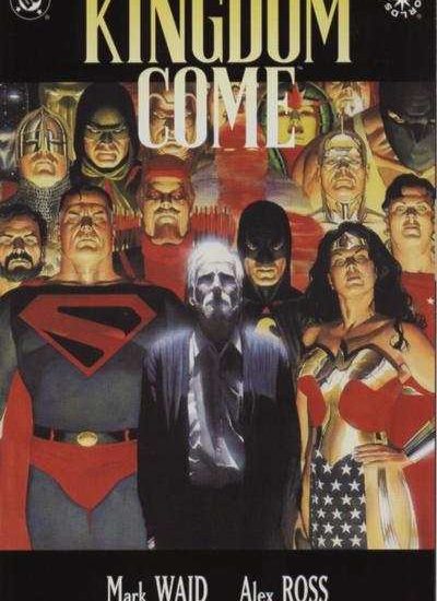 Esta historia se llama “Kingdom Come” y en ella se plantean temas muy interesantes. Desde el inicio está llena de tintes apocalípticos, ni mas ni menos que con líneas sacadas del mismísimo libro de la biblia. El mundo se ha convertido en un caos gracias a los hijos y nietos de los superhéroes, que para nosotros son contemporáneos. Debido a que los superhéroes se han multiplicado, ya no sienten necesidad de defender los ideales que sus padres y abuelos defendían, osea, les vale  un pepinazo los mortales y se la pasan pachangueando y destruyendo las ciudades en tontos juegos. Por lo tanto la antigua liga de la justicia tiene que salir del asilo en que estaban para  poner en su lugar a los malcriados nuevos superhéroes. Sin embargo, no será tan fácil. Se desempolvan viejos problemas y cuestiones, se desatan intrigas, habrá alianzas e inesperadas traiciones.