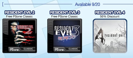 Estos juegos llegarán a invadir la consola de Sony; además, como la cereza del pastel de esta celebración, se nos dará la oportunidad de un Game Trial de 60 minutos de Resident Evil 4 en su versión remasterizada en HD…pero si creían que eso era todo… están muy equivocados, ya que para volver esto una locura zombie: se otorgara un descuento del 50% para Resident Evil 4 HD y Resident Evil Code Veronica X HD, pero repito todo esto es exclusivamente para los propietarios de una cuenta Plus en el servicio de Playstation Network y todas estas promociones duraran 2 semanas, obviamente los juegos clásicos de PSOne al ser adquiridos tienen la vigencia del mismo tiempo que la cuenta Plus que ustedes tengan.